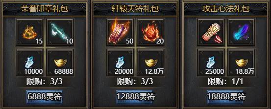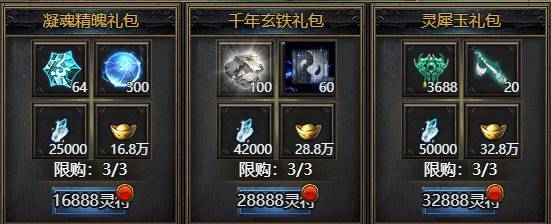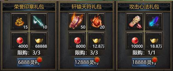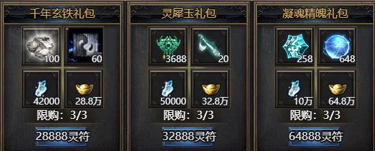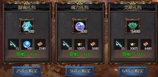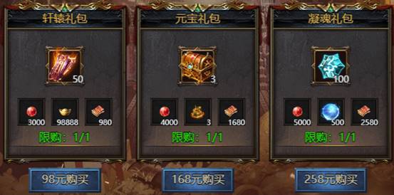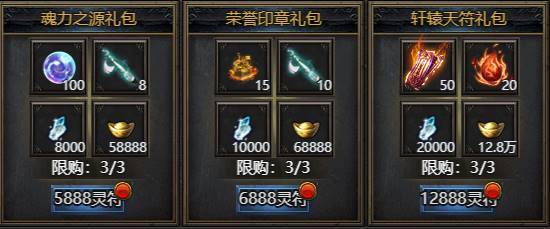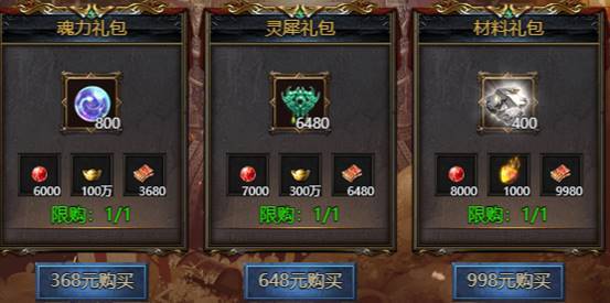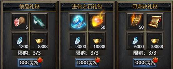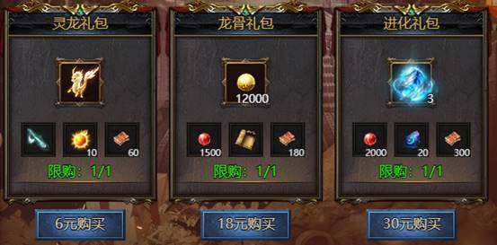 活动期间限购礼包,礼包内容与开服时间有关