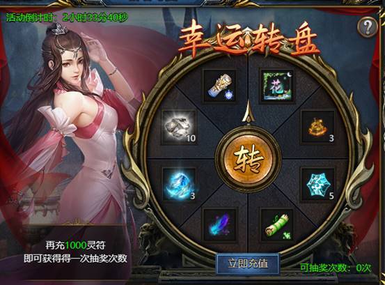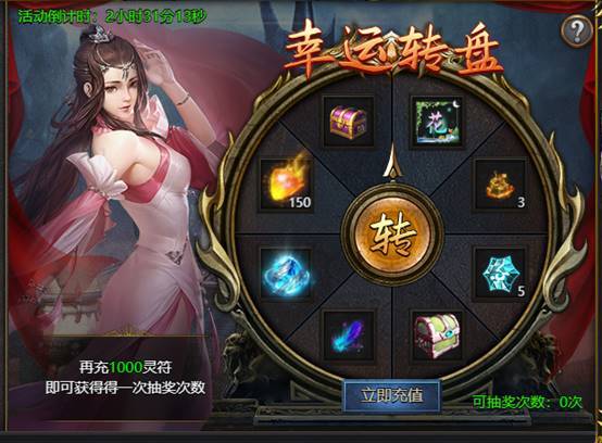 活动期间充值指定金额获得转盘次数,转取奖励。奖励可以多次转到,但是贵重物品可以保底出现,若转满8次,则可至少保底获得所有贵重物品一次。