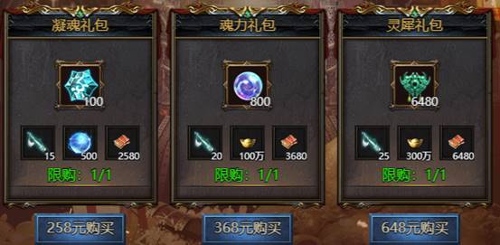 一、直购礼包——直接rmb购买的礼包