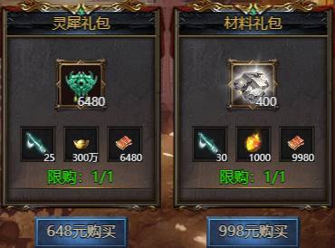 活动开启的特惠礼包,礼包内容如下
