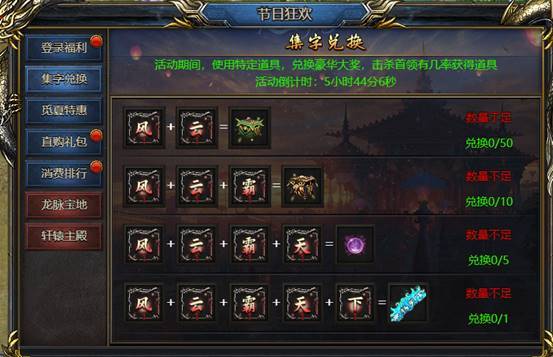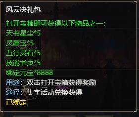 活动期间,杀195级以上怪物会掉落“风”“云”“霸”“天”“下”