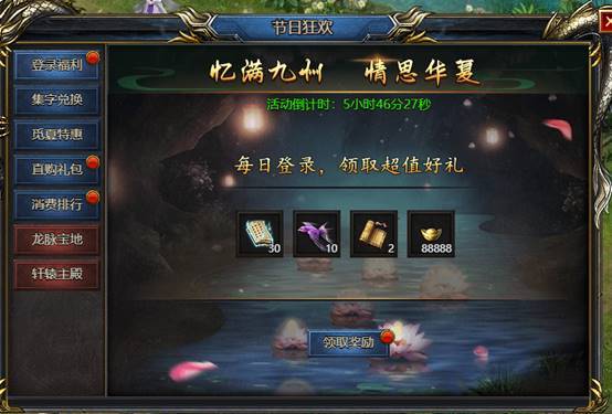 活动当天登录即可领取页面奖励